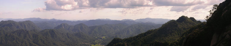 ![]() 中の岳から北の眺め。西中国山地の稜線がくっきり浮かぶ。時間と双眼鏡のないのが悔やまれた。 |