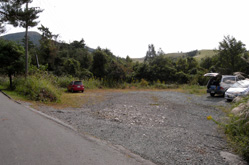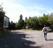 湧蓋山への登山道は,九重町の「ひぜん湯」コース,「一目山」コースのほか,熊本県小国町の「はげの湯」からも登山ルートが開かれており,山頂までの最短コースとして知られている。九重町と小国町を結ぶ国道387号線からはげの湯に入り,噴気が立ち上る旅館街を過ぎて「湧出山林道」に入る。林道は中腹の登山口まで延びており,ここまで車で乗り入れれば「山頂まで約1時間(案内板表示)」の最短ルートとなるが,今回は林道に入ってすぐの広い駐車スペースから登山を開始した。 |