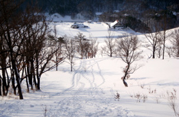 ![]() 南登山口は,冬季は駐車場の除雪は行われず,施設も閉鎖されている。 こちらから深入山に登る場合は,国道脇の除雪された駐車スペースが出発点となる。 |