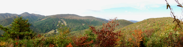 展望園地から毛無山方面を望むと,やはり全山紅葉にはまだ早かったと実感。今年の見頃はもう1週間先か? |