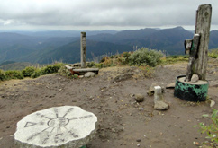 池ノ段山頂は風が強く冷たい。空模様はさらに悪化し,吾妻山の山頂にはガスがかかりはじめていたが,そんな天候の中でも不思議なくらい遠望がきく。大山は相変わらず雲を被って裾野しか見えないが,その左手には日本海に突き出た美保関が確認できた。