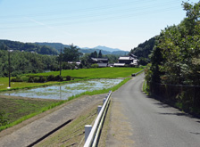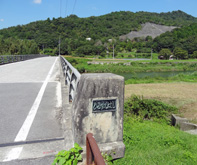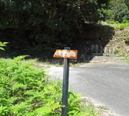 ![]() 三丘温泉から県道144号線を高森方面へ進むと,左手前方に城山がゆったりと稜線を広げ横たわる。人家がまばらになり,左手を流れる島田川が近づいてくるとまもなく左に舗装路が分かれ,その先に橋がかかっている。「広末橋」の名前を確認して渡り,その先で山陽道高架[玖珂19]をくぐるとすぐに右折,高速道路の側道を岩国方面へ進むと次の[玖珂18]ガード手前の広場に出る。ここが「広末コース」入口となる。 |