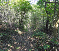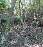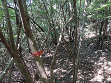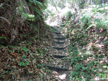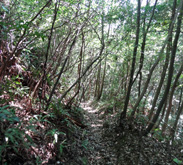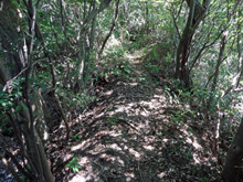 ![]() この登山道は,入口に唯一標識の立っているコースで,かつては城山に上るメインルートだったと思われるが,やや荒廃が進んでいるようで心配である。 |
