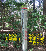 三丘ヶ岳/319m 平家(へいけ)ヶ城/300m 夫婦岩(めおといわ)山/240m | |