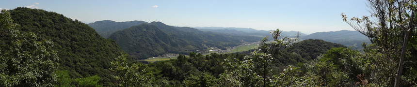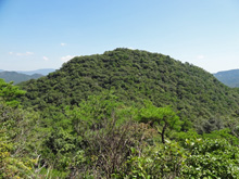 最高地点となる三丘ヶ岳山頂部には石垣などの遺構が見られ,その西隣にある平家ヶ城にも出丸が築かれていたと考えられるが,ここには山名のとおり平家一門に関する言い伝えも残されている。 別名を清尾山ともいう夫婦岩山は,山頂部にその名の由来となった二つの巨岩が並び立ち,麓からもよく見える。西麓にある高水神社の奥院として信仰をあつめていた時期もあったという。 登山道はいくつか開かれているが,尾根伝いに立てられた高圧線鉄塔の巡視路以外の道は若干荒れ気味。山麓には旧山陽道や,島田川右岸に江戸時代に作られた新道「淡海道」にまつわる史跡や遺構が残り,山歩きに歴史探訪を交えた周回コースも味わい深い。 |