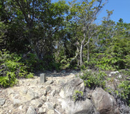 ![]() 城山分岐から「平家岳」方面に少し進むと短い急坂となり,上りきったところが平家ヶ城。南に展望が開け,三丘ヶ岳が眼前にそびえ立つ。 |