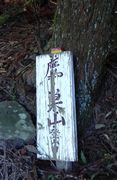 恐怖の岩場を過ぎ,樹林帯を少し進むと見晴らしの良い展望台風の場所に出る。数人が景色を見ながら休憩中。ここが山頂だろうと荷を下ろしかけたら,「山頂はもう少し先ですよ」の声。よく見ると展望台の先に赤テープがあり,踏み跡をたどるとまもなく標識の立つ山頂に到着。残念ながら展望はない。展望台に戻り眺めを楽しんだ後,再度「恐怖の岩場」へ。しかし,慣れてしまったのか上りほどの恐怖感はなく,意外にすんなりと下りることができた。 | ||