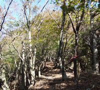 ![]() 期待はずれだった英彦山に比べ,こちらの紅葉は色づきが良く,狭く険しく心細い登山道を華やかにしてくれる。 裏英彦山同様,伐採を逃れたブナの巨木が多く,森だけを見ていると中国山地のようでもあった。 | ||