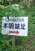 本明山は江津市有福温泉町と浜田市(旧金城町)の境界にあり,山頂周辺には13〜16世紀にこの地を治めていた福屋氏の居城「本明(もとあけ)城」の遺構が残されている。本明城は1234(天福2)年に福屋氏初代兼広(七尾城主益田兼高の三男)によって築かれたと伝えられる。戦国時代の十二代隆兼は,毛利氏に従わず尼子氏について毛利方の福光城を攻めたが,元就の次男吉川元春らの反撃に遭い,1561(永禄4)年に本明城を明け渡し浜田から海路で出雲へ逃亡した。 現在,山頂の主郭には金比羅神社が鎮座し,北東の尾根先には福屋氏の普段の居所「福田城」があったとされる。最盛期は東西方向におよそ900mの規模で曲輪が配されていたという。別名「乙明(おとあけ)城」。 登山道は,北麓の本明地区から登るコース,北東の東光寺から登る通称「福田コース」などがある。 |