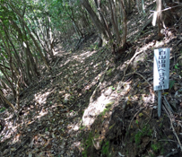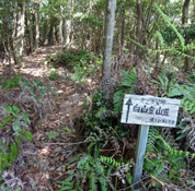 | 行程 | 平田登山道入口(09:30)〜「山頂へ1000m」標示(09:40)〜「山頂へ600m」標示(09:50)〜田部峠コース出合(10:00)〜山頂(10:05)〜(折り返し)〜平田登山道入口(10:35) |