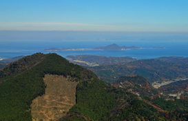 両子山は国東半島の最高峰で,190万年〜110万年前の火山活動による噴出物が半島全体に堆積している。六郷満山の総持院である両子寺を擁する霊峰であるが,半島の中央で一番高いということで現在の山頂はアンテナが立ち並び,メイン登山道も舗装された車道(一般車は通行不可)となってしまった。 とはいえ山頂からの眺めは素晴らしく,この日もかすみ気味ながら,姫島の向こうに浮かぶ山口県(周南や光の工場群),四国の山々,別府湾から祖母山,由布岳,場所を変えて北九州方面まで,ほぼ360度の展望を楽しむことができた(寒いので長居はできなかったが)。 |
