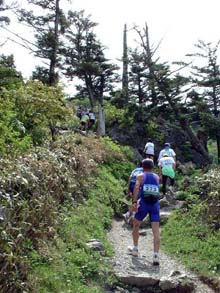 マラソンのゴールは、山頂ピークを通過し少し下ったところにある。 ゴール手前で立ち止まり写真を撮っていたら、周囲の人たちから 「たいした余裕だ」と笑われた。タイムは振るわなかったが・・・