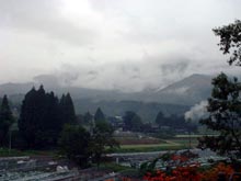 小学校の向こうに見えるはずの市房山は、厚い雲に覆われていた。