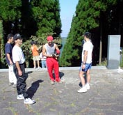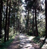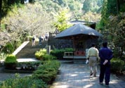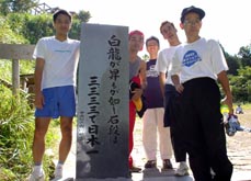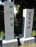 右から2番目の石碑の画像、右は細川熊本県知事(当時)、左は中曽根首相(当時)の筆によるもの。 ここからは、約1km先の釈迦院に向かう。途中でデジカメを置き忘れたというめたろ〜さんは、一足先に下山。 |