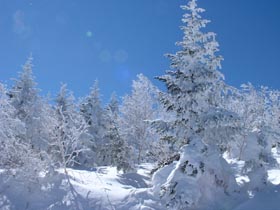 焼額山(2009m)と、山頂の霧氷。(03.02.13)