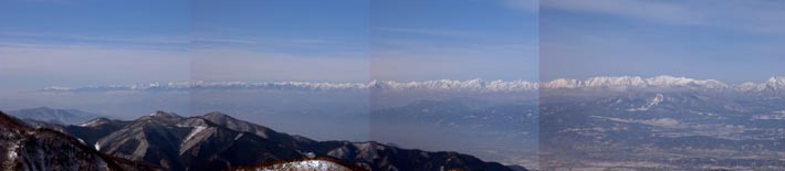 昨年同様好天に恵まれて、西館山からは北アルプスの純白の稜線が一望できた。(03.02.15)