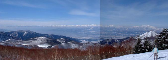 (左)西館山(長野パラリンピック・アルペンスキー回転コース)より、