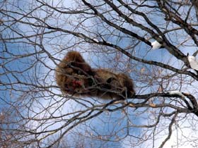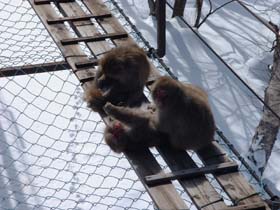 スキー場の周囲には野生のニホンザルが沢山出没する。運が良ければカモシカやオコジョ