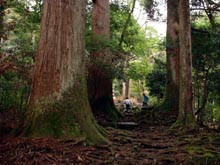 4合目の市房神社まで、杉の巨木が立ち並ぶ参道が続く。