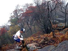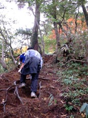 二ツ岩を過ぎると、さらにいくつかの岩場を乗り越えながら、急な山道を下ってゆく。
