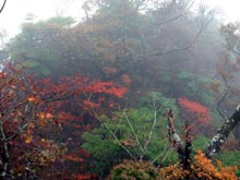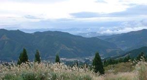| 湯山温泉・水上荘から望む市房山全景(20日朝) |